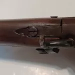 We bought this on vacation in England from a small Antique Gun Smithy in the town of Warwick. It was advertised as a Highwayman’s gun. Very simple but deadly. It sports a .700 Cal. bore x 11 inch barrel. The barrel shows Birmingham hallmarks. It’s a smooth bore which looks very clean Asking $525 plus shipping Always open to offers