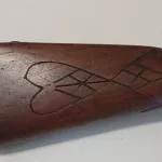 The overall length is 34 ½ . The 19 ½ round .70 caliber barrel smooth bore. The “.Holy Water Plug” encompassed by a hand carved “Heart”.