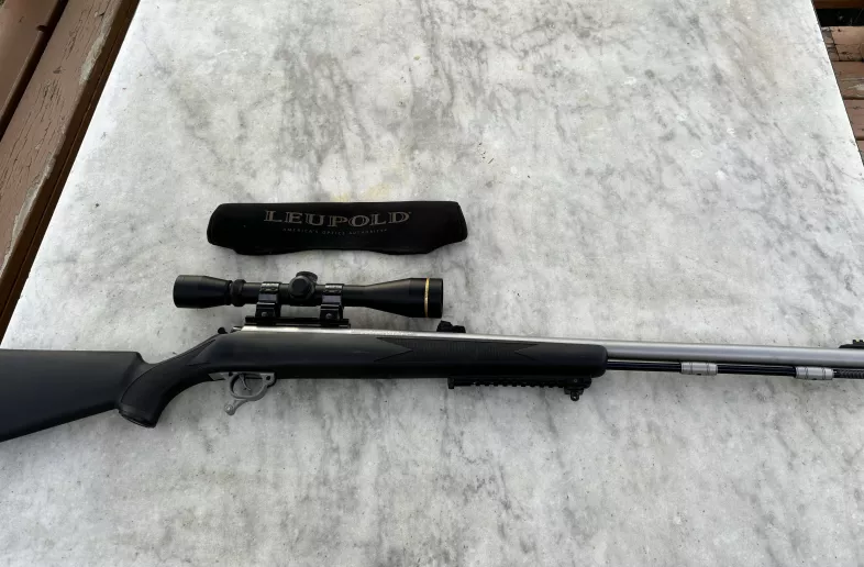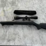 Has synthetic stock and comes with see thru scope rings. It carries the LEUPOLD ‘ULTIMATE SLAM’ scope in 3 x 9 x 40 mm .