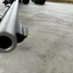 Has a ballistic drop reticle , Fibre optic sights and a Polymer bipod rail .