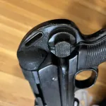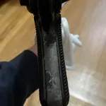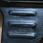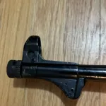 New spec so no moving parts. Comes with RCMP letter. It has been painted black. It’s been proposed that it came out of Cyprus in the 1980s although could have been a collector who did this. All visible numbers matching, although not all numbers are visible. It looks like one of the welds melted some of the paint near the lower receiver (pictured), resulting in a textured, off look to it. Where the paint has chipped away, you can see underneath that most of the bluing is gone.