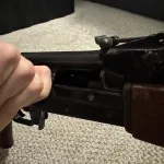 This specimen is of typical early 1990s deactivation to UK standards, which was fairly lenient at the time. There is a small crossed swords DA and 93 stamp to the left of the receiver, indicating the deactivation work was done by Birmingham proof house, which is one of two official UK entities (along with London) that inspects and certifies these weapons to ensure they meet legal requirements.