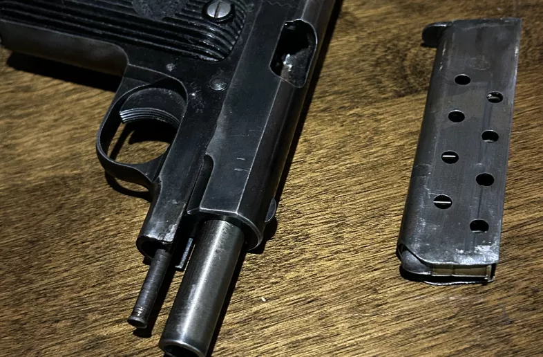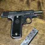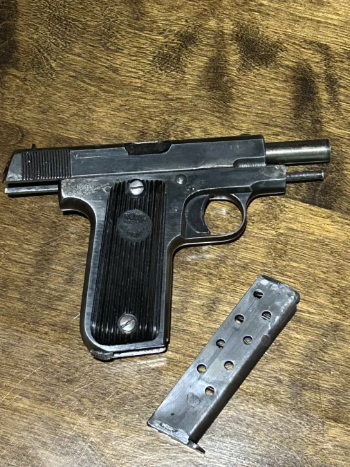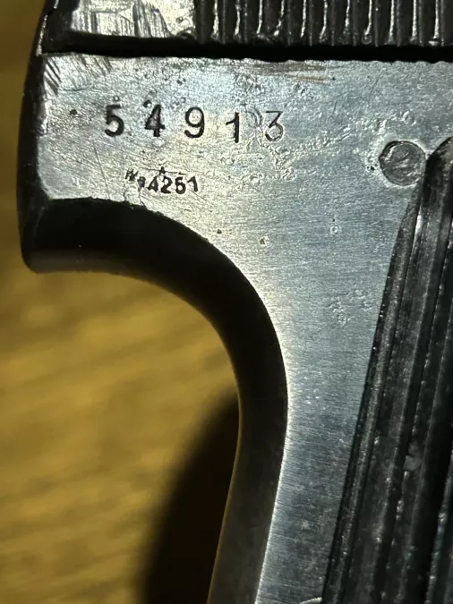 This is a unique 7.65 court 9 coups* pistol made in france during the german occupation of the ww2