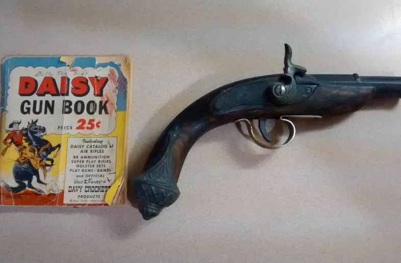 Antique Replica 18th century Pistol Single Shot and 1940's Daisy Gun Comic Book