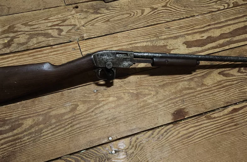 This Savage 1909 suffered a horrible life long before I got her. The barrel is junk (wicked corrosion and has been cut just past the front sight dovetail). There are no sights left on this gun and no mag. But, it does fire and eject (tested myself). The wood is in good shape. Got a few dents in the right side of the stock as seen in pic but nothing serious. Serial # is present under buttplate. Selling as a parts gun. Will ship.