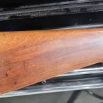 Nicely figured checkered walnut stock with schnabeled end, amd a newer soft recoil pad.