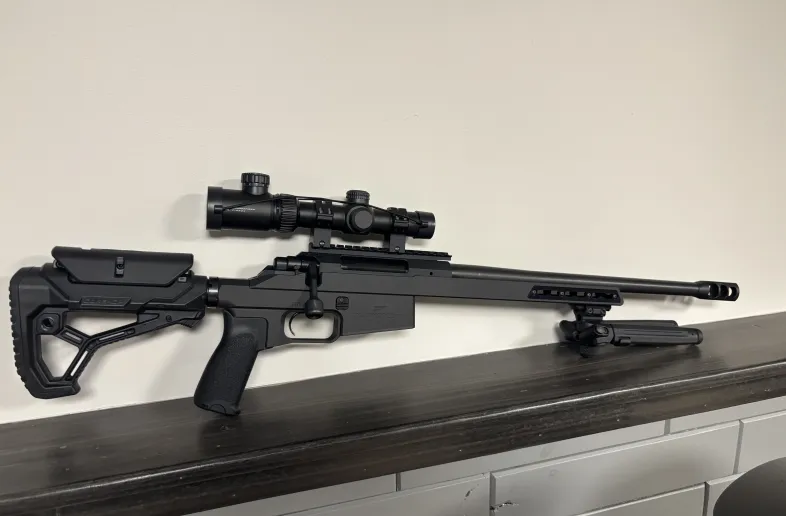 Added stock, grip, magpul bipod, vortex crossfire 2 1-4x24, muzzle break, comes with 1 magazine