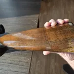 - Walnut stock with checkering—some light wear at the butt end, but no cracks or damage