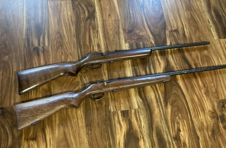 I have 2 Cooey 22’s Top one is a Model 39, Bottom is a Model 75, Both 22’s work excellent, little loss of Bluing and the Model 75, some of the Varnish is flaking off. $200.00 Each Call or Text 902 824 1328 Middleton, N.S. Shipping anywhere in Canada 🇨🇦, Shipping is Extra.