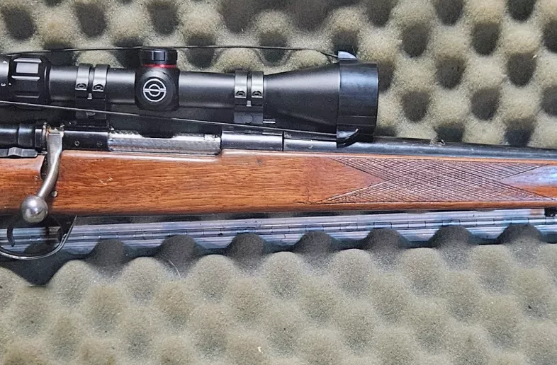 Comes with a brand new bore sighted Simmons 3-9x40 8-Point scope on new Weaver rings.