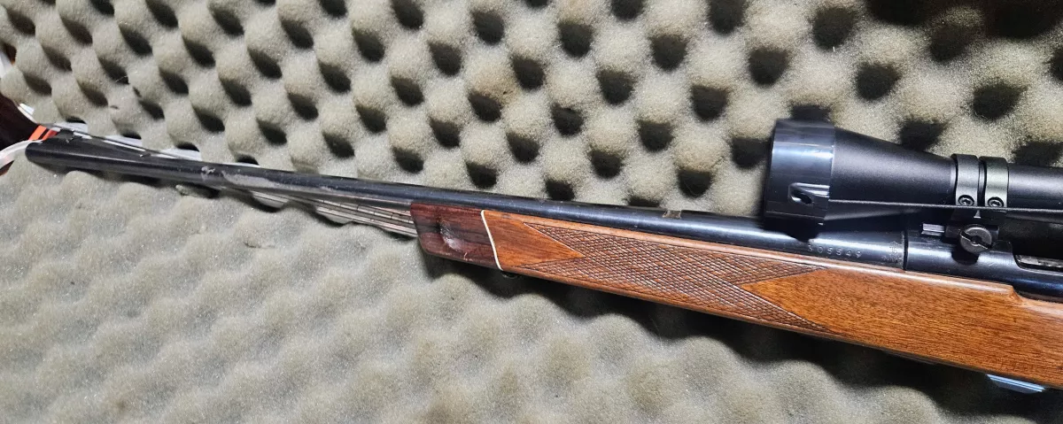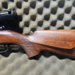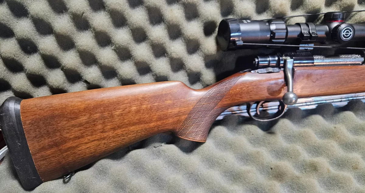 Really nice checkered walnut monte carlo stock with a rosewood cap, and soft recoil pad.