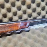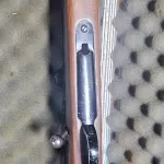 Bright shiny bore, side thumb safety, and hinged metal floorplate.
