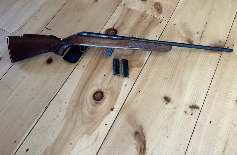Comes with 3 Magazines. This has been a reliable plinking gun. Purchaser pays shipping. Wear marks on rifle as it has been carried hunting and the range.