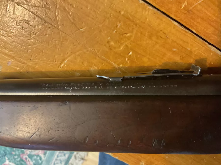 Marlin model 336 RC in 32 special. Back stock was fixed but you can replace these for about $50, gun was used and show the wear , good rifling and bore, not interested in trades , great bush gun and local sales only because of postal strike, gun is Jm stamped Call or text for fastest reply 902-798-7956
