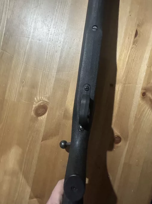 Husqvarna Mauser build with a heavy barrel and built in muzzle break.Synthetic stock,bipod,rail.