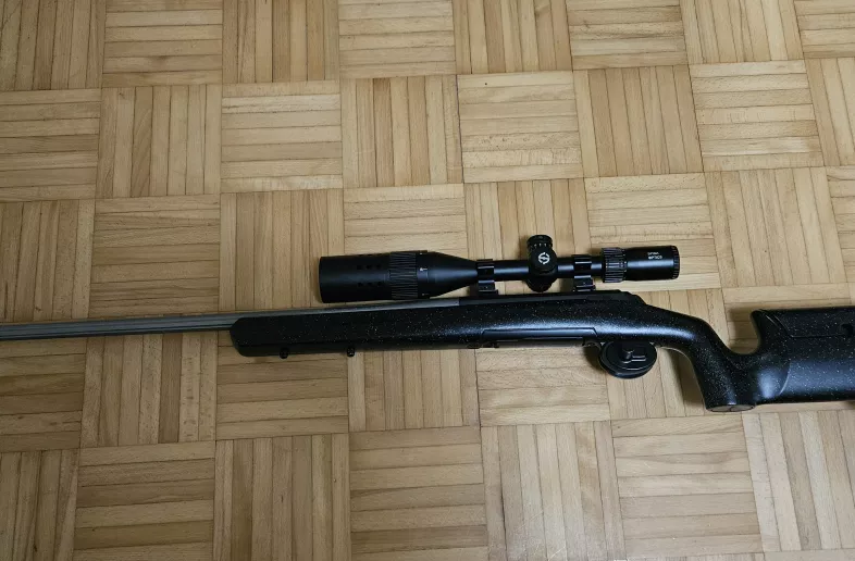 Spina scope. Adjustable cheek piece, stainless fluted barrel with muzzle break. 7mm Rem. MAG