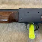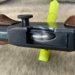 The previous owner added a 3” wide flat base to the fore end for better front rest control and has added slippery tape to aid in consistent recoil.