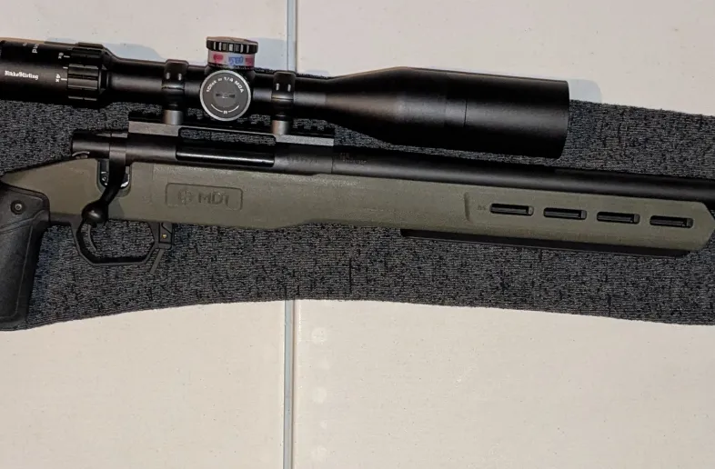 Selling a Howa 1500 with 24" heavy steel barrel chambered in .308, mounted in a MDT Field Stock chassis. Rifle is basically new — only fired to sight in, less than 20 rounds total, then stored in my safe.