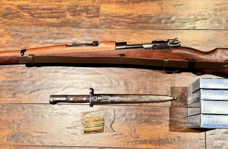 M48BO Yugoslavian Mauser Rifle. Excellent essentially mint condition. All matching. Includes pictured extras (sling, bayonet, scabbard, frog, ammunition). 8mm Mauser.