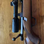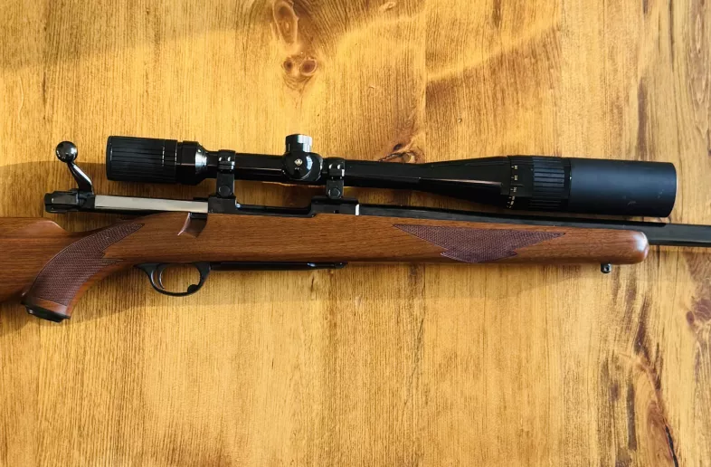 Ruger M77 in 22-250, heavy barrel with Bausch and Lomb 6X24X40mm scope, (shown with 3” removable sunshade). This rifle has been fired less than ten times and has never been used for hunting. Stored properly at all times, there is not a single scratch or ding in the stock. A+ condition. Video available on request.