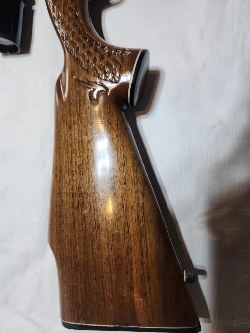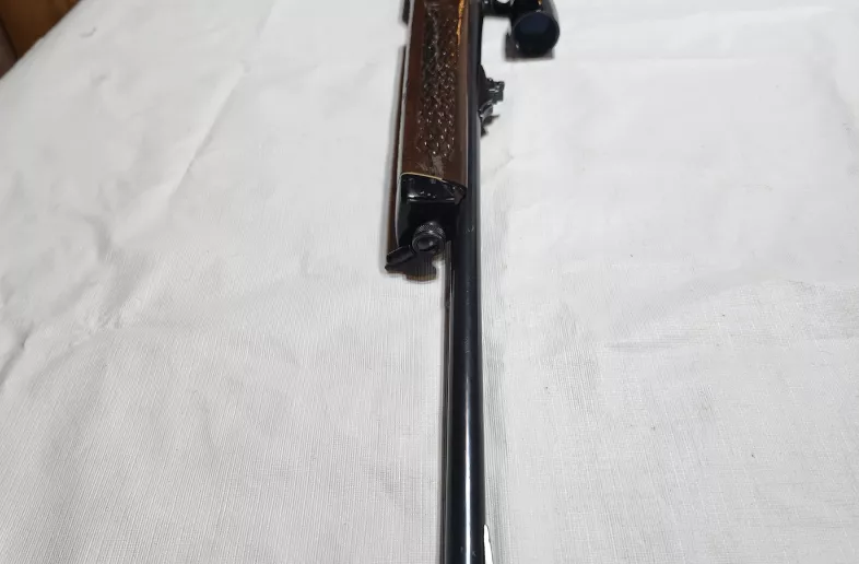 3006 remington model model 742 wood&master. It is in goo workin condition. There is a lots of blueing lost. There is some scratches on the wood and the right side of the forarm was repaire you can see in the picture. The scope is a bushnell 2.5-8×32 and it is sling ready. 450$ firm plus shipping and insurance pal is a must from campbellton n-b emt transfer the best way to get in touch with me is buy phone are texe me cell 581 884 5257 home 506 759 8052 no trade thanks.