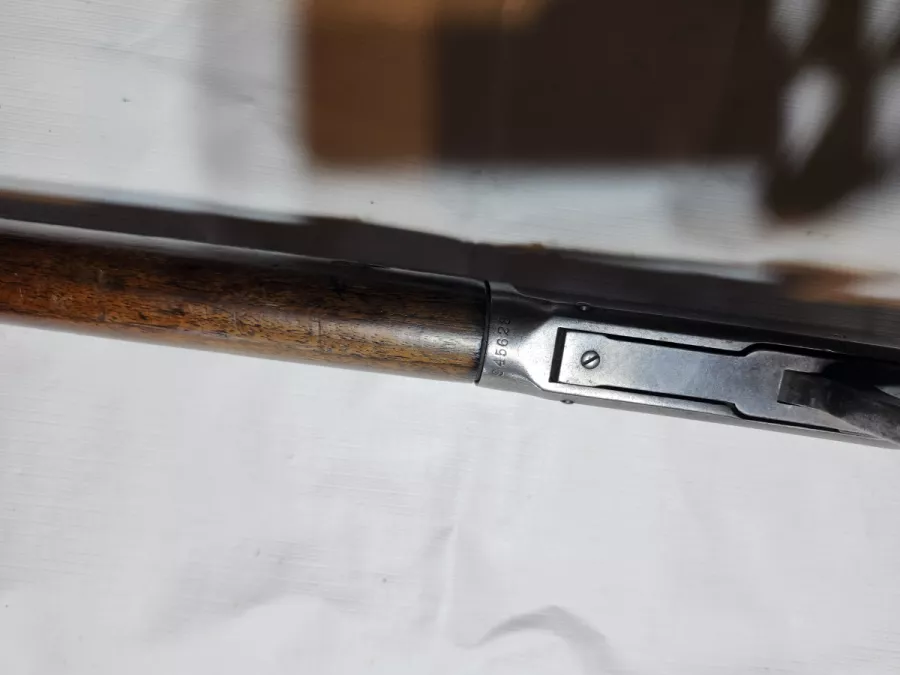 Winchester 32ws smokeless powder made aroun 1896. in good working condition there is a lots of blueing lost and lots of scratches on the wood and there is a piece messing on the left sid of the forarm you can see in the picture. It is 26 inches long barrel with button magazine. The raffling is very good with dark bore. 700$firm plus shipping and insurance pal is a must from campbellton n-b emt transfer the best way to get in touch with me is buy phone are texe me cell 581 884 5257 home 506 759 8052 no trade thanks .