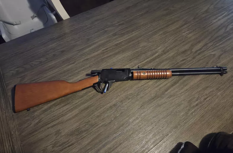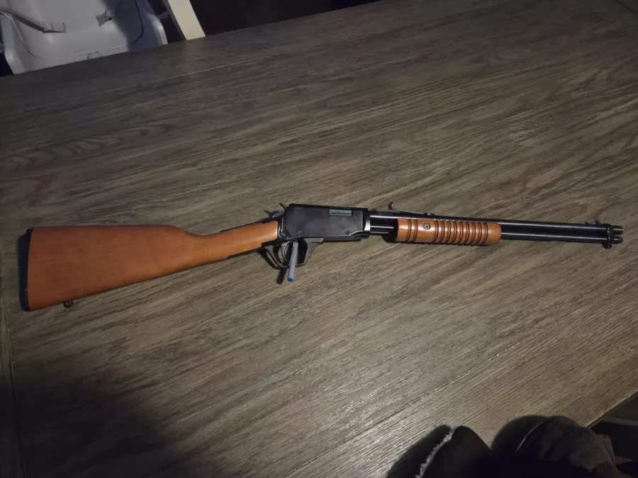 Gun is brand new, only fired a few times. Has wood stock with buck horn sights and 17 shot tubular magazine.