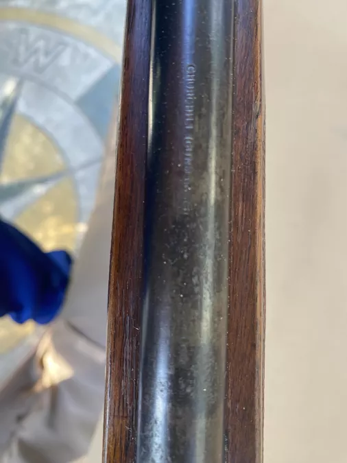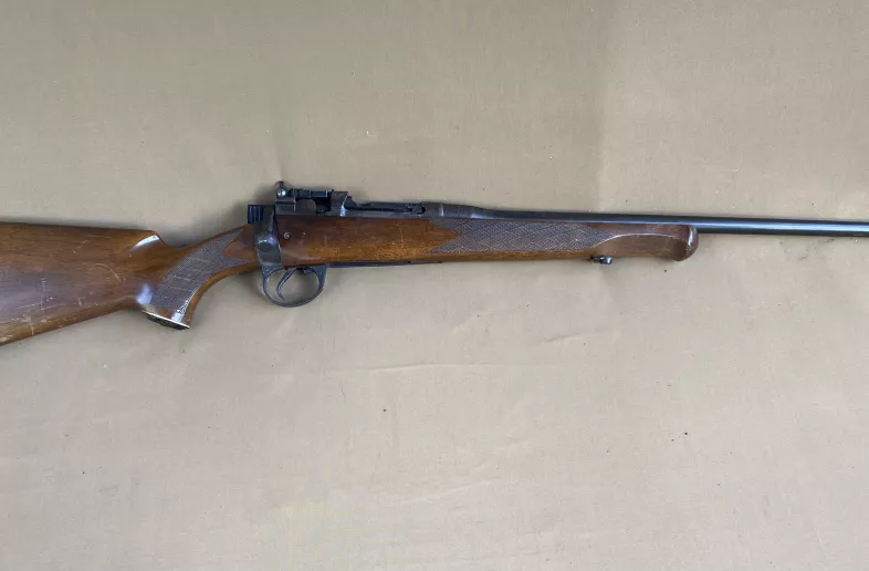 .303 Churchill British Sporter rifle. A bit rough but bore looks clean. Would be a great restoration project. Missing the magazine.