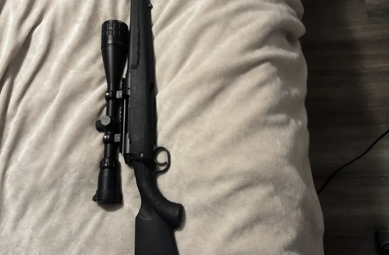 Savage axis chambered in 6.5 creedmoor. Rifle works as intended. I’ve put less than 50 rounds thru it. Has bushnell 4-18x scope.
