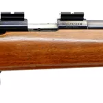 Main Description: Manufactured 1963. No sights, blued finish, heavy barrel drilled and tapped with 6 plug screws installed, receiver drilled and tapped with two piece scope bases, smooth bolt knob. One piece target wood stock, wide forearm with full length rail on bottom, pistol grip, grooved black rubber recoil pad.