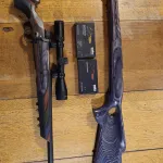 22-250 for sale. Mauser action, Remington heavy bull barrel, boyds at-one adjustable stock, Weaver 3-9 scope. Butt stock and cheek rest adjusts. Shoots very accurate. Comes with an extra left hand thumb hole boyds stock in grey laminate, and 21 rounds of sako factory ammunition.