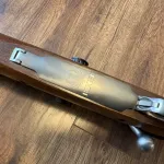 Ruger Hawkeye Hunter in 30-06. Free-floated, 22-inch old hammer-forged stainless steel threaded barrel with 5R rifling, with a stainless control-round feed bolt. Very accurate rifle. Shoots sub-moa with 180gr Sako Gamehead. Engraved hinge floor-plate (4 rounds). 20 MOA picatinny rail secured with four #8-40 screws overtop the Ruger integral scope mounts, directly on the solid-steel receiver. Nice walnut stock with the classic red rubber buttpad. Comes with the Ruger LC6 trigger.