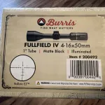 Comes with 1-inch low Vortex Pro rings and a Burris Fullfield IV 4-16x50 scope. E3 illuminated reticle. Burris flip-up scope covers.