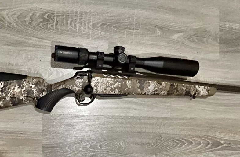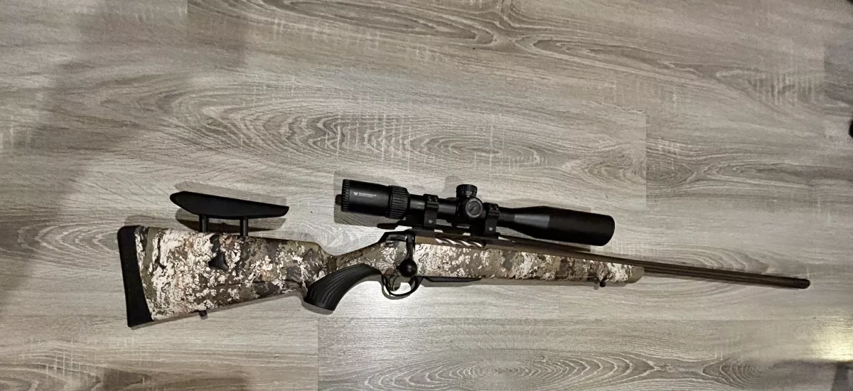 READ THE DESCRIPTION! Final price reduction. Selling my brand new tikka t3x veil chambered in 6.5 creedmoor , fluted bolt , fluted and threaded barrel with factory muzzle break . Only have 15 rounds down the barrel. I’ve added a Kalix teknik adjustable cheek riser , it comes with a vortex diamondback tactical 4-16x44 FFP and vortex rings pro series 30 mm rings . I also have a bunch of ammo for it if you’re interested. Local sale or meet within and hour. More pictures upon request. I have a spare tikka t3x stock with a rattle can paint job I’ll throw in . 1750 for everything (ammo included for local sale )