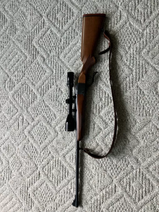 Ruger #1 in Excellent shape with Bausch and Lomb Elite 3000 4-12X scope and Ruger leather sling. Serial #132-91842. Made 1990. More photos available to interested buyers.