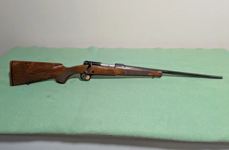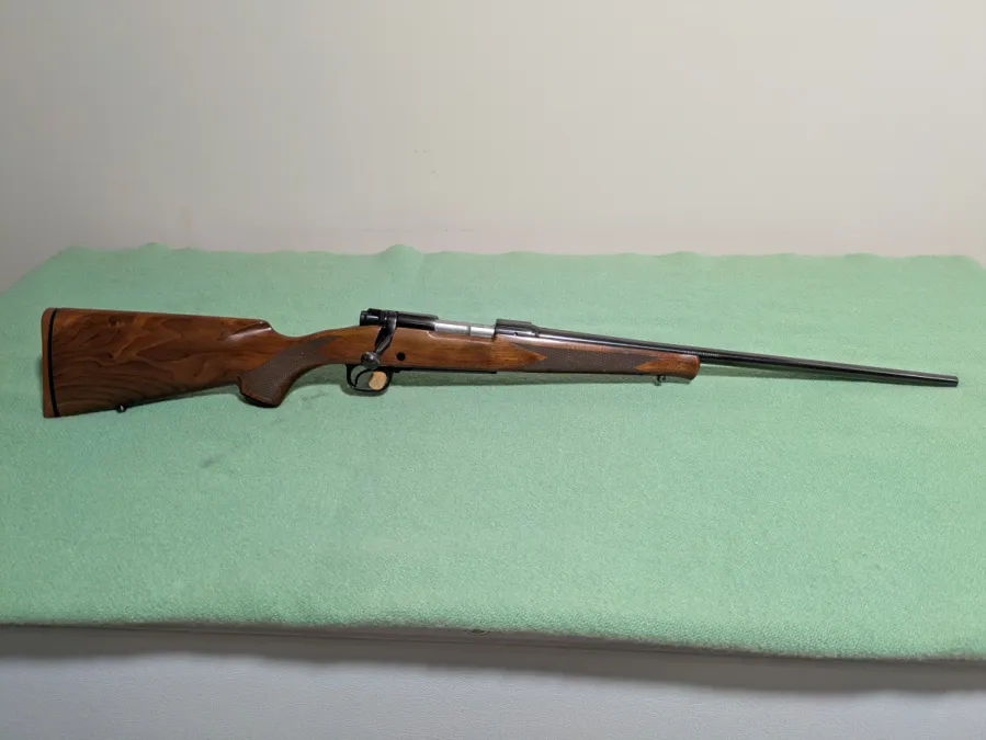 Near perfect condition Compact model 70 CRF in 243 Winchester. Featherweight version with 20" barrel and 13" length of pull and weighs 6lb 5oz. Bought this not long ago but I've decided I'll never use it and would make a great Christmas present for a young hunter or maybe just yourself. I've not fired it but it functions perfectly with dummy rounds and has an excellent trigger of the original design. Only flaws I can find are a couple of flat diamonds in the checkering. Bore is perfect and round count appears very low. As you can see, the wood has beautiful figure. EMT payment, no trades. PAL info required for verification.