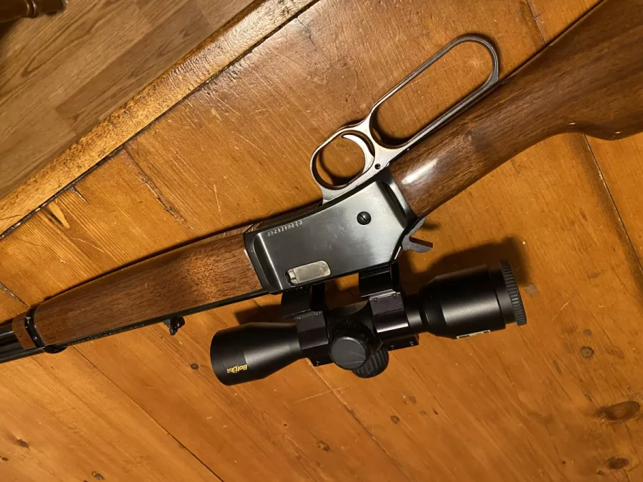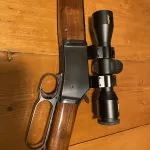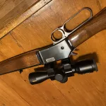 Comes with Nikon scope with co-witnessing. This setup allows for easy viewing to the iron sights.
