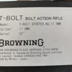 Browning T-bolt Sporter in 17 HMR. Gun is New and unfired. Only out of box for pictures $1000. Firm. Shipping at cost. PAL is required. Thanks