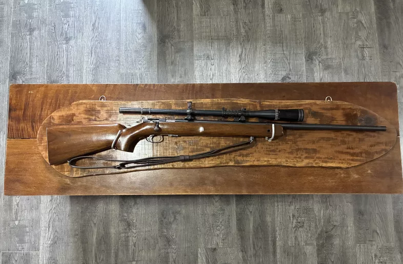 I have a Winchester model 75 target in very good original condition, made in 1949. Comes with beautiful hardwood mount board, a vintage Lyman Super Targetspot scope and also a time period sling that may have come with the gun when purchased. This is a beautiful original Winchester target rifle. Comes with letter from original owner that dates this rifle. Text me at 9025215217 with any questions.