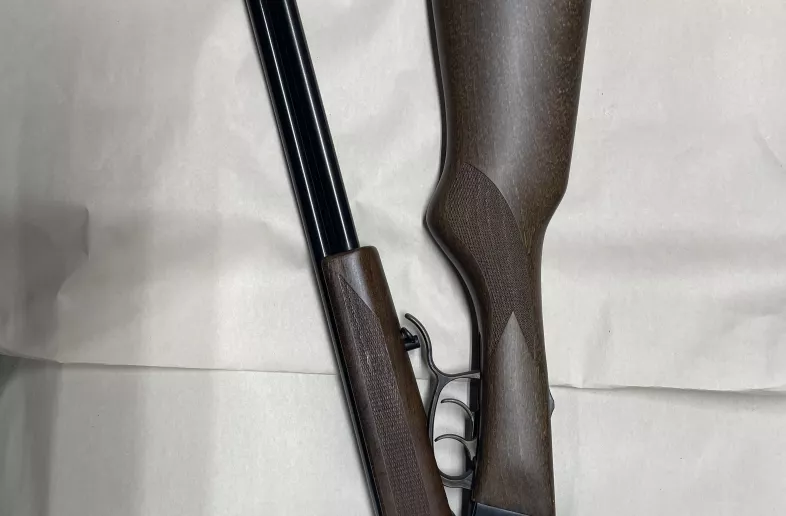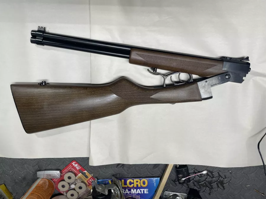 Chiappa Double Badger 410/22lr. Fibre optic peep sight. Front fibre optic bar missing. Great farm gun for fun and small critter control.