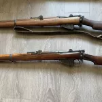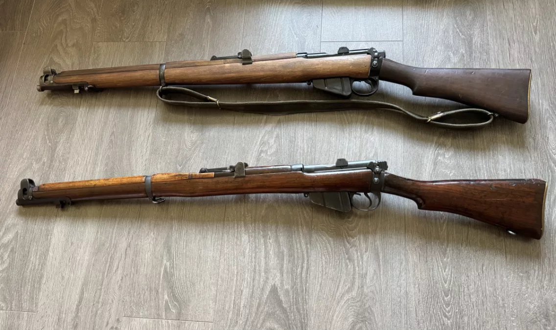 Lee-Enfield No. 1 Mk. III 1914 (The bottom one), this is the early model featured magazine cut-off mechanism. This rifle was manufactured by the London Small Arms Co Ltd. In excellent working condition, very collectible.