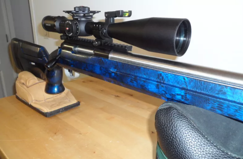The scope is a Kahless K10-50 long range precision rifle scope, 10-50X56 in MOA with a double dot reticle. Turret adjustments are 1/8 MOA with 50 MOA elevation and 41 MOA windage adjustments. This scope is clear, bright and easy to use with the parallax adjustments made with the center ring around the elevation turret. Complete with fold down scope level and six screw rings