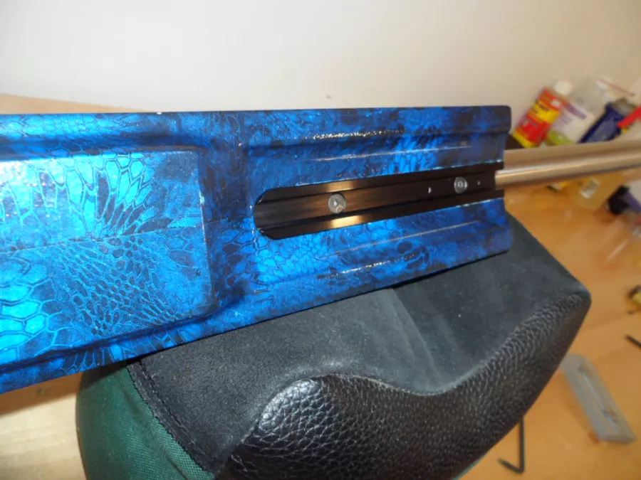 The stock is a beautifully finished Robertson composite made for precision and accuracy, complete with adjustable cheek weld, and three way adjustable buttstock--adjustable length of pull and adjustable butt pad tilt and height. The bottom of the forestock is three inches wide for use on an independent front rest or there is also an Anschutz rail under the forestock that can be used to mount a bipod. I used it with a Henry Rempel F Class bipod mounted with an adapter to the Anschutz rail.