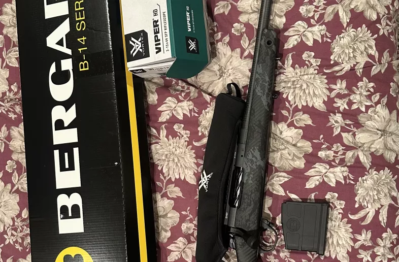 Brand new Bergara B-14 Crest Carbon (B14LM751CF) chambered in 300 win mag, the rifle is full carbon fibre and super light, Absolute eye candy from every angle!!