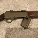 Really cool Browning BAR semi auto in 25-06. From the serial it’s a 2015 model, it’s in very good shape. It’s got Leopold windage adjustable scope bases installed. All the metal is Ceracoated in a burnt bronze colour, very sharp looking rifle! Action runs very smooth, this is a very nice rifle. The 25-06 is a hugely underrated cartridge but I love it! Hunts just about anything in Canada, I’ve seen it drop moose in one shot, but so nice and pleasant to shoot. Plus lots of easy to find or make brass if you reload. Located in Airdrie, shipping available, will have to have a look at your PAL.
