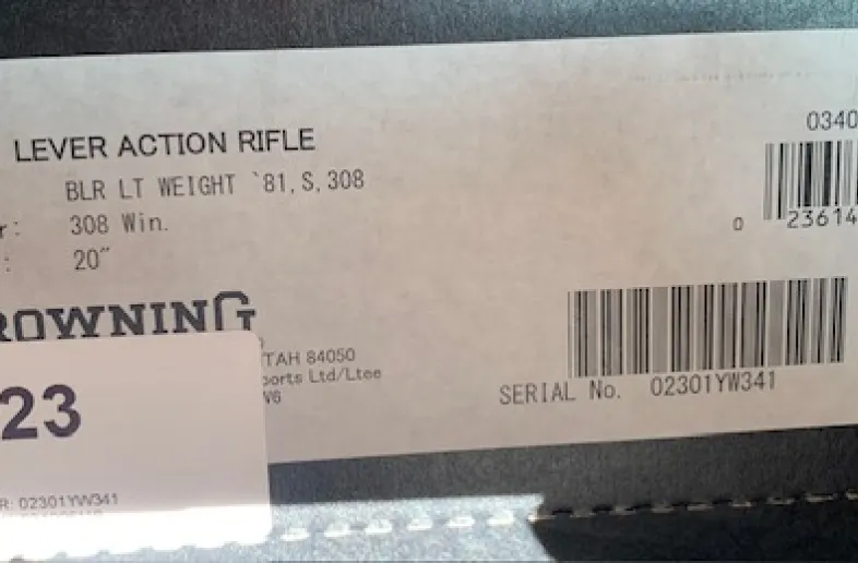 Browning BLR , light weight 81,S, 308 Win, 20"barrel, in box, perfect condition + extra Skinner express ghost sight.