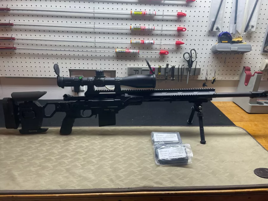 The scope is a Kahles 6241 6-24X56 with SKMR3 reticle. Scope comes with Kahles bubble level, Kahles ocular flip up and neoprene covers. The rings are MDT Elite -34 - X-High. I'm the original owner and have all paperwork for the rifle and scope. Serious inquiries only, Valid PAL required. Not interested in trades or shipping.