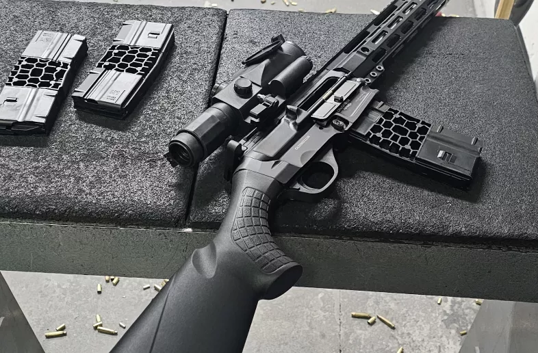 The Crusader Arms Backland Hunter Rifle is a modern twist of a modern hunting ranch style semi-automatic rifle. The lineage of this rifle comes directly from the existing non-restricted shotguns on the market like the Benelli M4 and operates with the same style Bolt Carrier and strut that retreats into a Benelli spring loaded buffer tube to absorb and reset the bolt carrier’s position. The Benelli M4 style operating system was then chambered in .223 wyld (also accepting 5.56 rounds). It is designed for versatility and reliability, with a manual safety and a full-length top rail for optics, making it suitable for hunting and sport shooting.