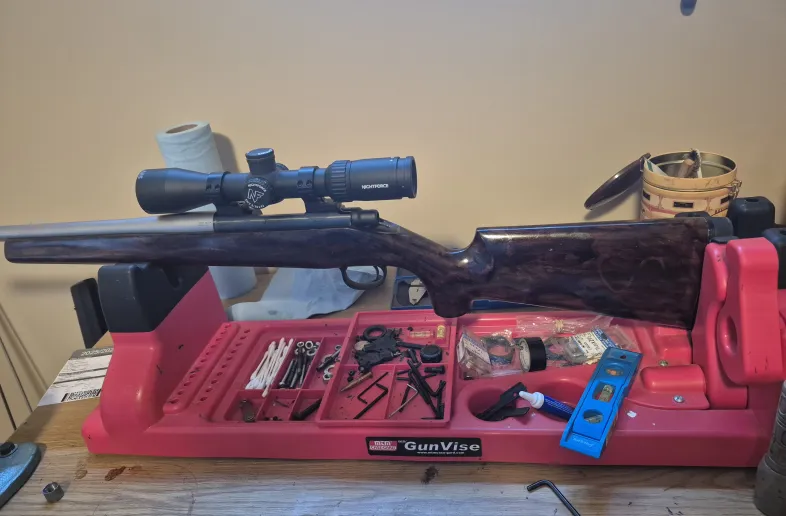 308 Win built off a Rem 700 SA. Jury barrel installed by Henry Remple set in a Wildcat Stock KS TAC stock. With scope weighs 8#. Barrel has been broken in.