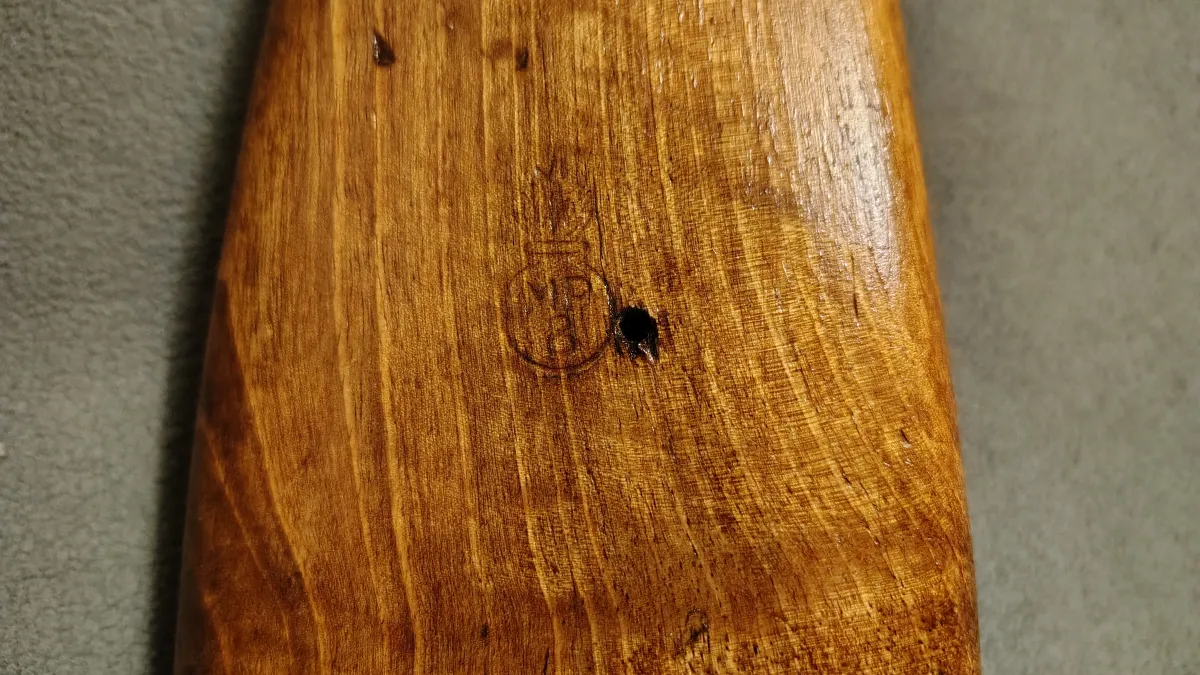 This example has a Spanish-refurbished stock with the MP-8 flaming bomb proof, and a Spanish cleaning rod.